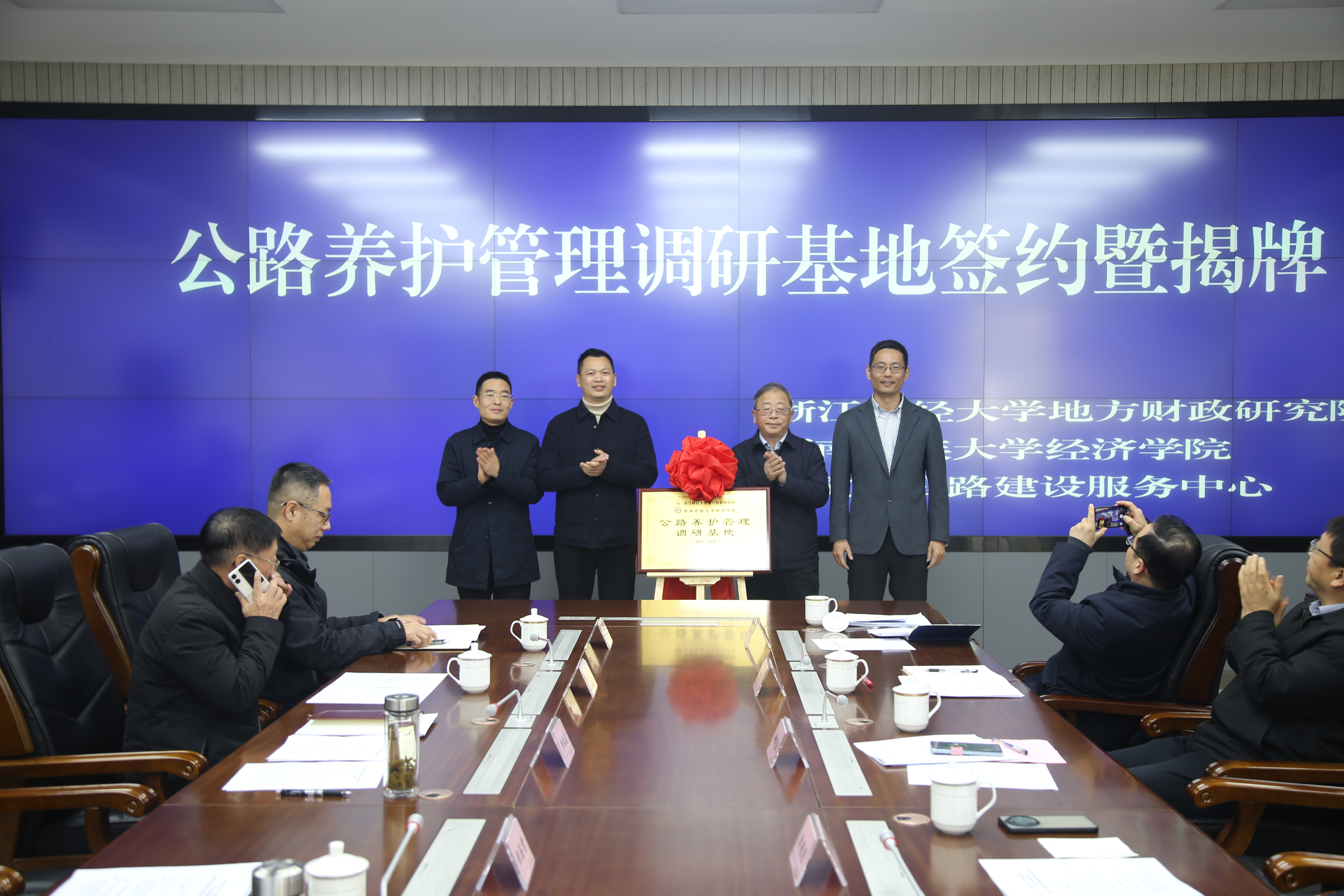 研究院院长钟晓敏、西南民族大学经济学院副院长单德朋,自贡市交通运输局党组书记、局长李慎康,自贡市交通运输局党组成员、市公路建设服务中心主任但海君共同为调研基地揭牌。