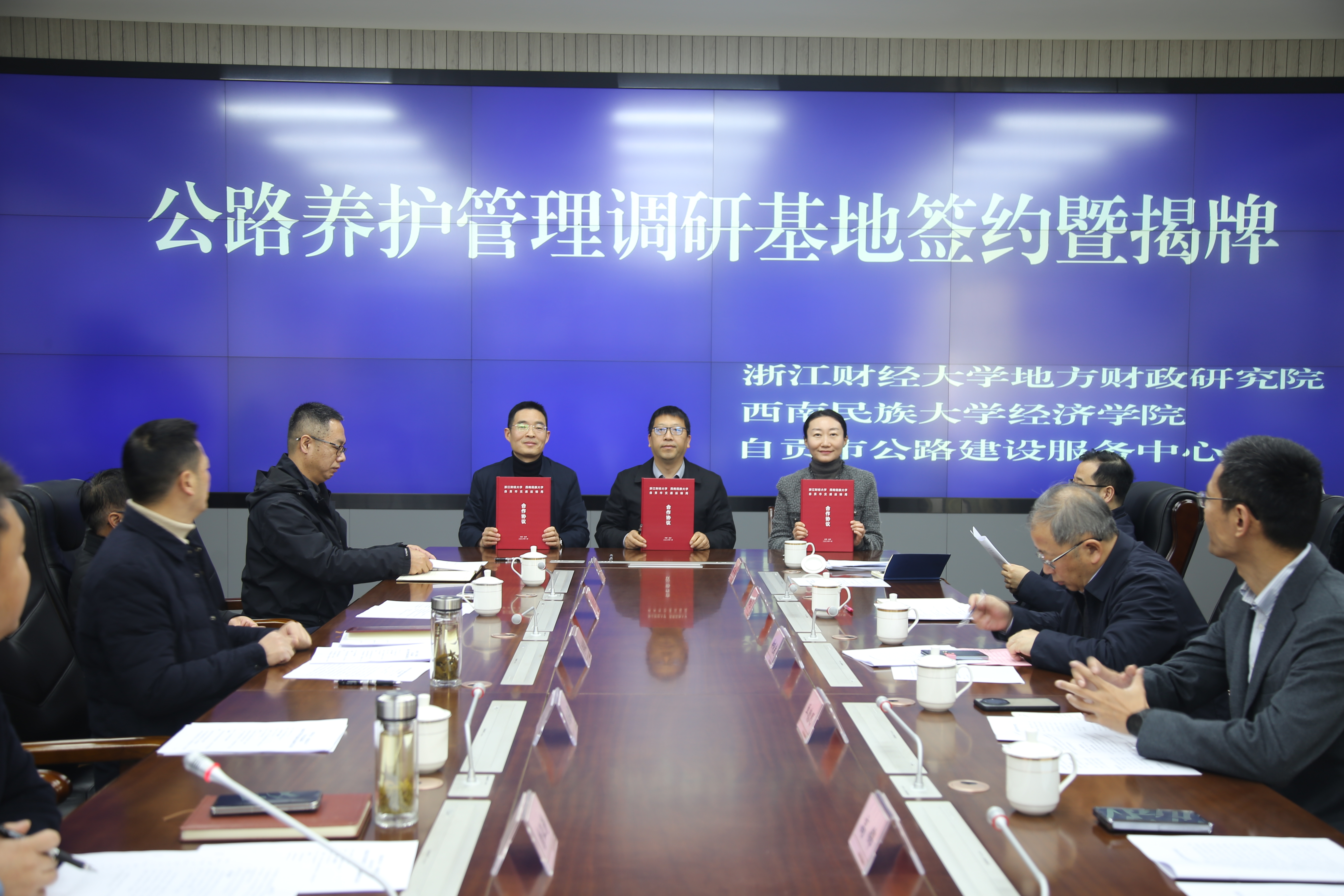 研究院院长钟晓敏在致辞中指出,公路基础设施对畅通国内大循环、促进国内国际双循环,扩大内需,推动高质量发展,具有重大意义,是中国式现代化的重要支撑。当前,我国已建成了规模庞大的公路基础设施资产,加强存量设施养护管理正变得日益紧迫。在地方财政紧平衡的约束下,如何优化财政保障机制,如何创新养护模式、提升资金使用绩效是亟待解决的课题。地方财政研究院长期以来在地方财税体制、财政管理等方面研究积累了显著优势,及时成立“公路养护财政管理”团队,并联合国内外研究力量,对公路养护财政管理政策与制度设计开展攻关研究,已取得系列成果。研究院此次联合西南民族大学经济学院在自贡市联合共建调研基地,旨在整合两所高校的研究优势,积极吸收浙江省等地在公路养护管理领域的创新实践成果,为自贡市公路基础设施事业高质量发展提供咨政支持。
