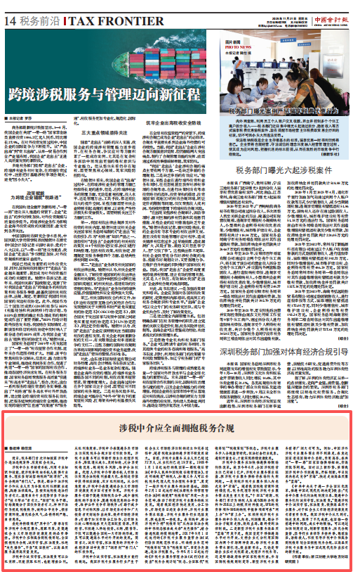 查处并持续曝光“黑中介”,警示与引导涉税中介规范服务、履职尽责,是促进社会主义市场经济健康发展的必要举措。涉税中介应彻底告别税收筹划,全面拥抱税务合规,诚实守信、依法履责,杜绝“灰色操作”、不当“反面教材”,以高品质服务赢得高质量发展。